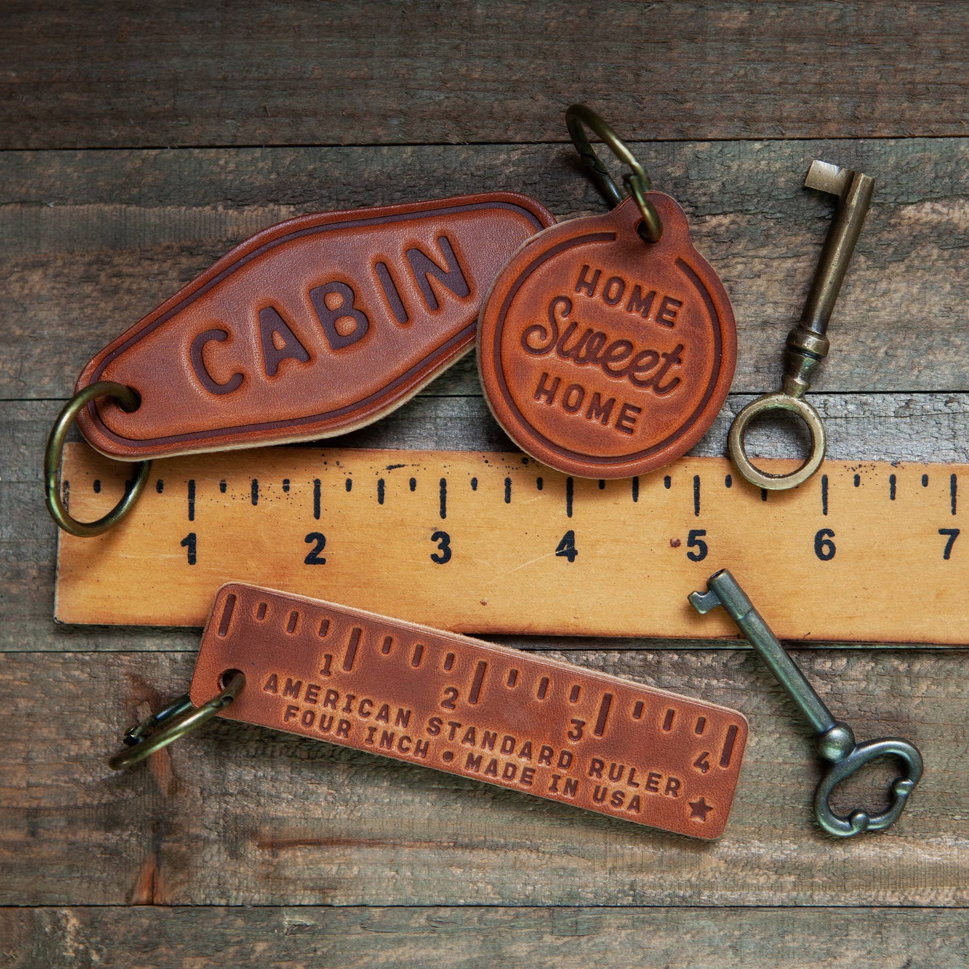 Hand stamped leather keychain that feels like vintage leather. The perfect addition to any set of keys or a gift for that friend you never know what to buy for.