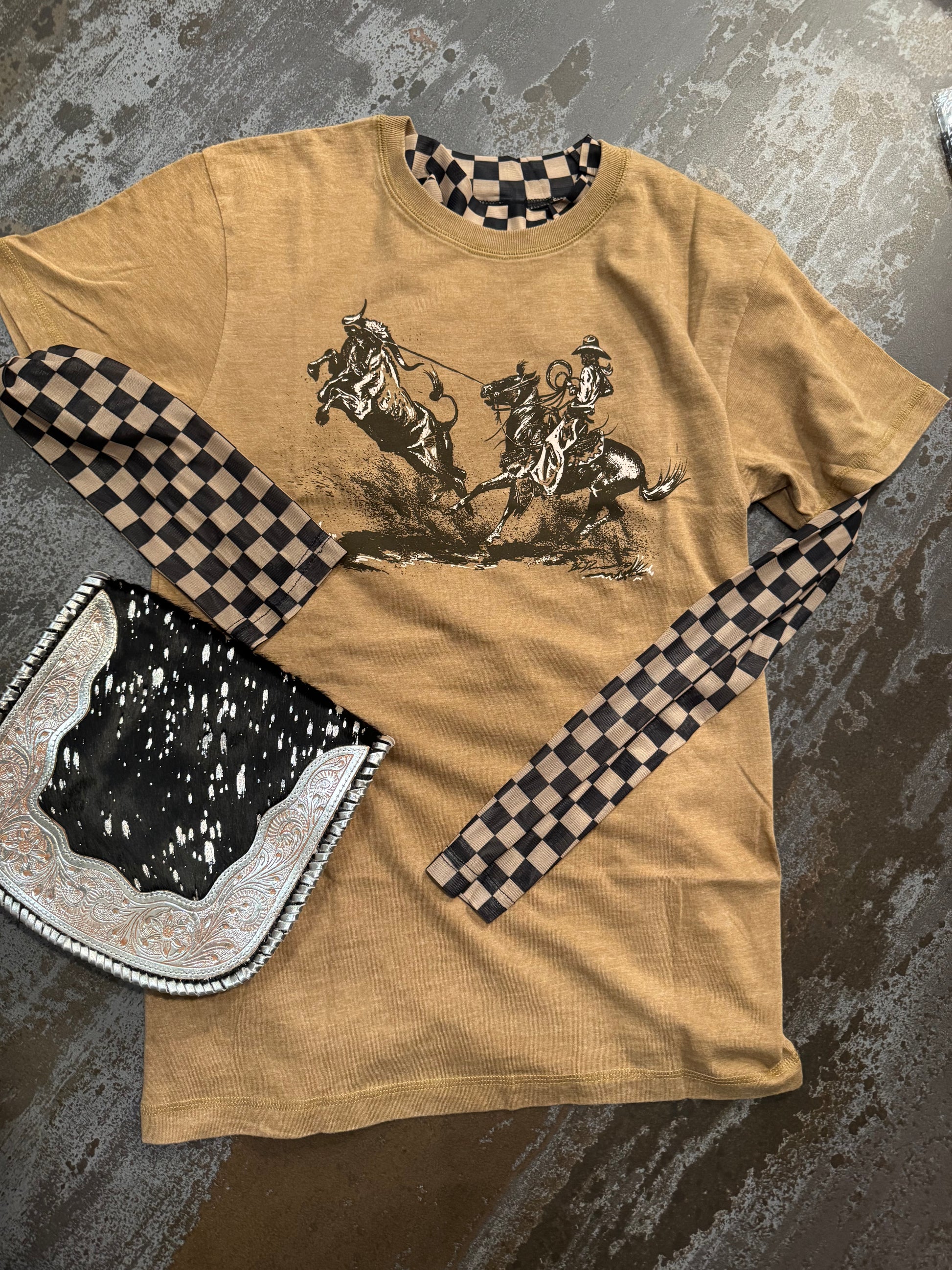 Get a little sass in your style with our Sassy Saints Mesh Top! The old gold and black checkered design adds a touch of edge to this long sleeve mesh top. Perfect for a night out or adding some attitude to your everyday look.